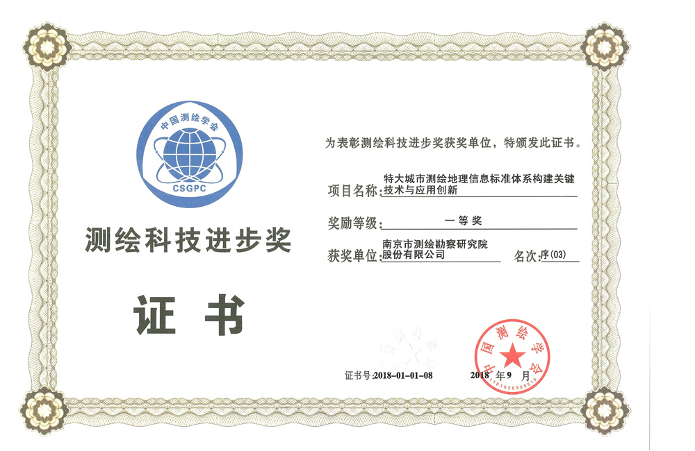 全國(guó)測(cè)繪科技進(jìn)步一等獎(jiǎng)——特大城市測(cè)繪地理信息標(biāo)準(zhǔn)體系構(gòu)建關(guān)鍵技術(shù)與應(yīng)用創(chuàng)新
