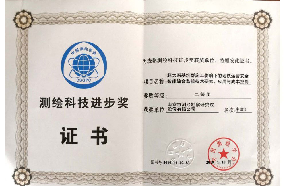 全國(guó)測(cè)繪科技進(jìn)步二等獎(jiǎng)——超大深基坑群施工影響下的地鐵運(yùn)營(yíng)安全智能綜合監(jiān)控技術(shù)研究、應(yīng)用與成本控制