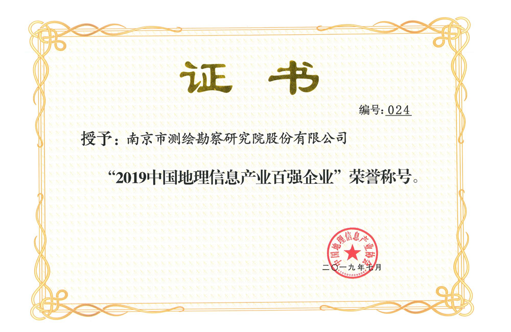 2019年中國(guó)地理信息產(chǎn)業(yè)協(xié)會(huì)百?gòu)?qiáng)企業(yè)